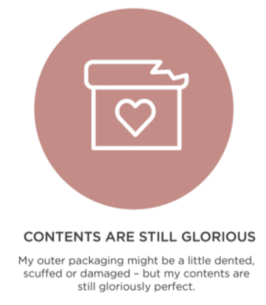 Products included in the collection are discounted between 40% to 60%, and feature easily identifiable icons and descriptors: ‘catch me while you can’ for discontinued items, ‘outfit change’ for products with packaging changes, ‘contents are still glorious’ for items with minor, superficial damage, and ‘save £ and use me straight away’ for products within six months of their expiry date.