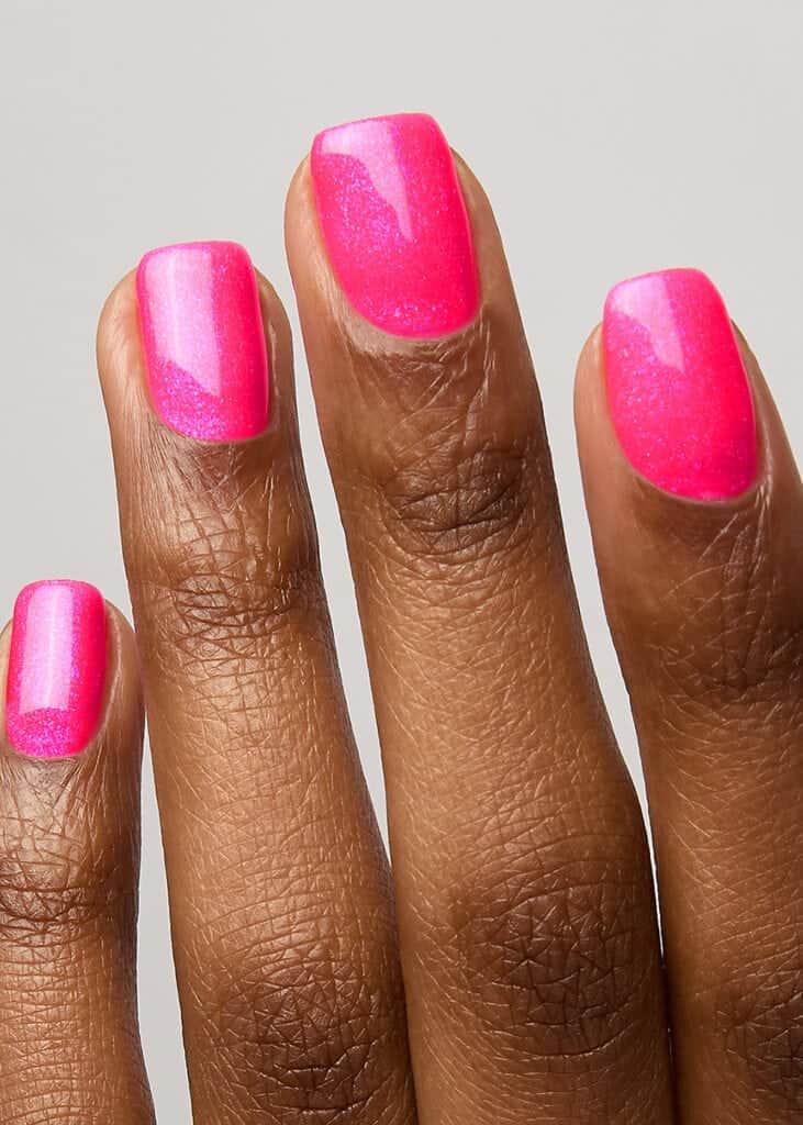 - Hot: hot pink with pink and purple shimmer.