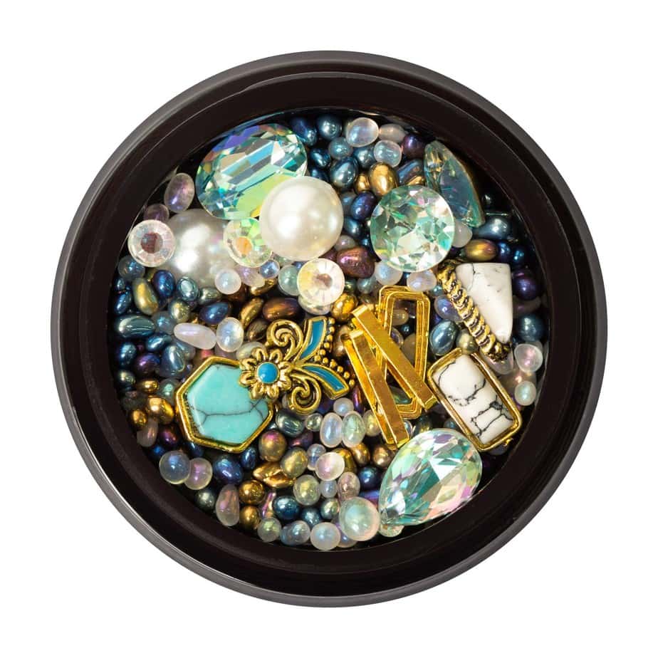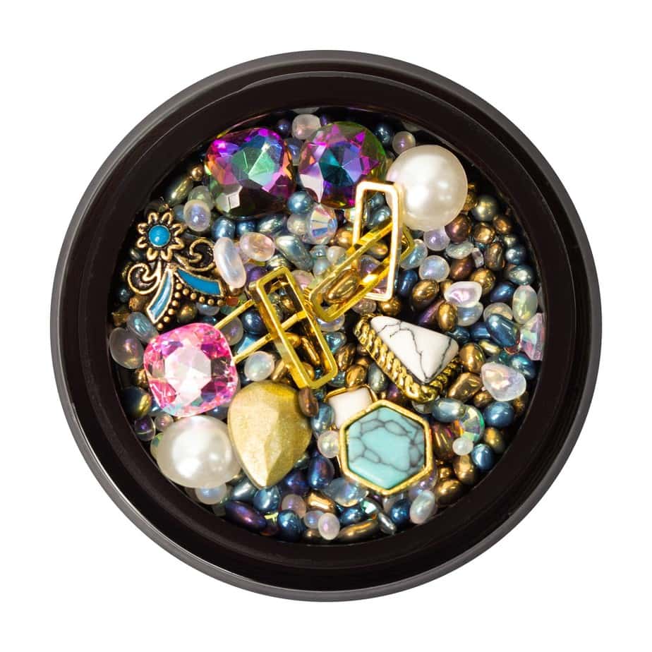 Available via NSI, each of the seven pots contains a mix of gems, pearls and beads to help you create bespoke nail designs.