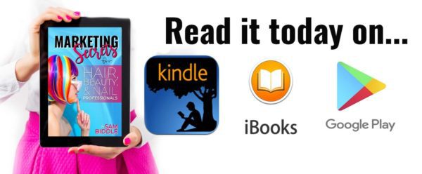 Marketing Secrets for Hair, Beauty & Nail Professionals is available instantly for £12 via Kindle, Google Play and iBooks.