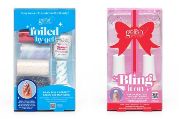 Launching alongside the collection are two limited edition Gelish kits: the Foiled By Gel Mini Foil Kit and Bling It On Mini Rhinestone Kit. Featured in the Foiled By Gel kit are 9ml bottles of Gelish Foil Gel and Top It Off top coat, plus six nail foils. In the Bling It On kit, techs can find 9ml bottles of Gelish in pink shimmer, Ambience, and snowy Arctic Freeze, as well as rhinestones in yellow gold, rose gold and silver, and white and ivory pearls.