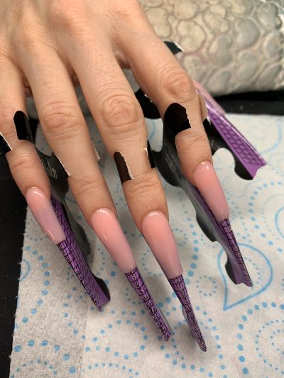 - Cure, apply more product if necessary to obtain the desired shape and structure, or a different shade for a French ombré look.