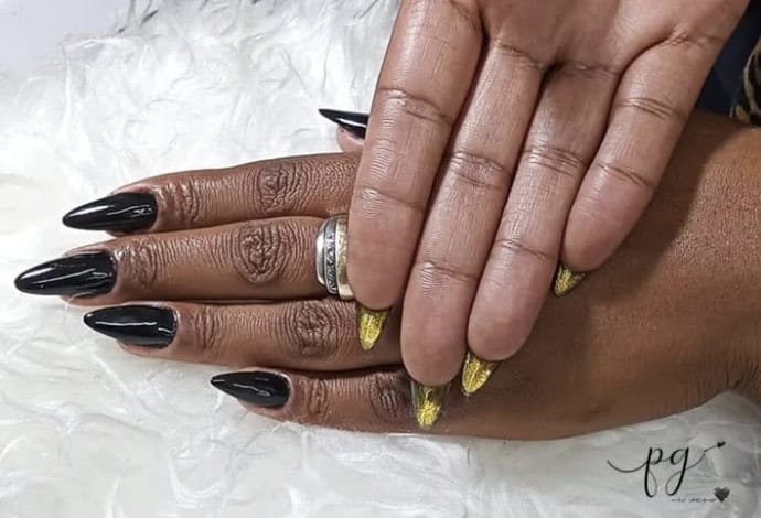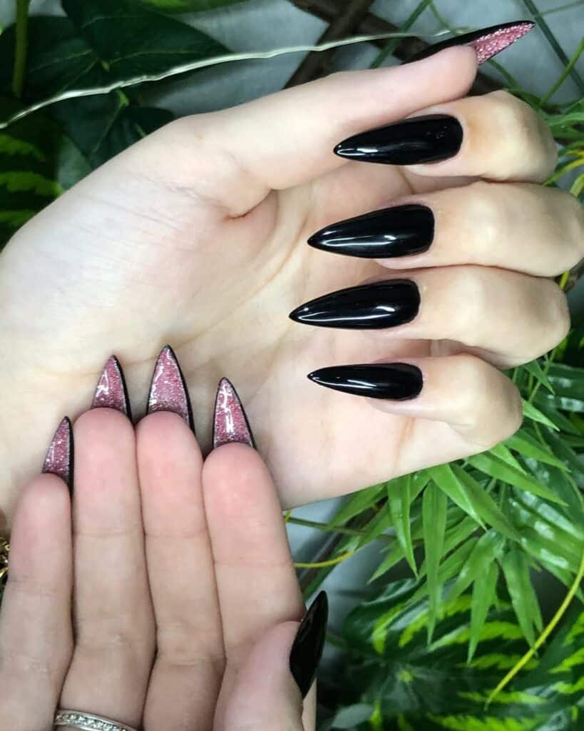 Paris Fashion Week saw the trend make a striking statement on the Matières Fécales runway, where nail artist, Lora De Sousa, paired glossy black talons with a vibrant pop of red on the underside of the nails.