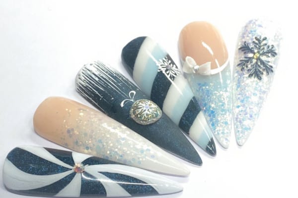 This course covers an array of techniques using the liquid & powder system, such as colour fades, ombré, glitter encapsulation, cutout designs and 3D bows – taught by Hazel Dixon.