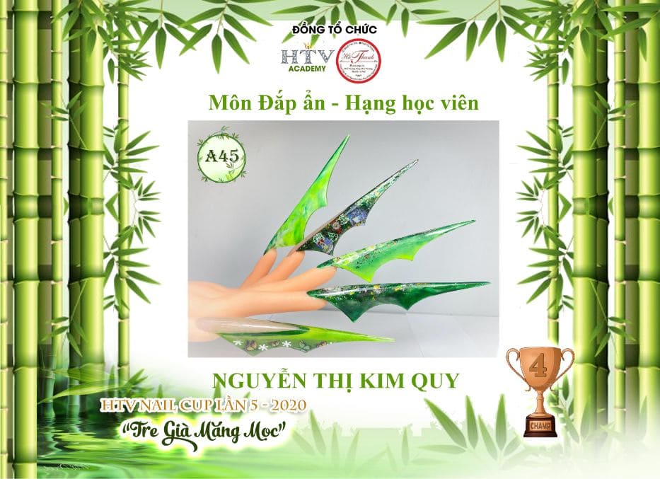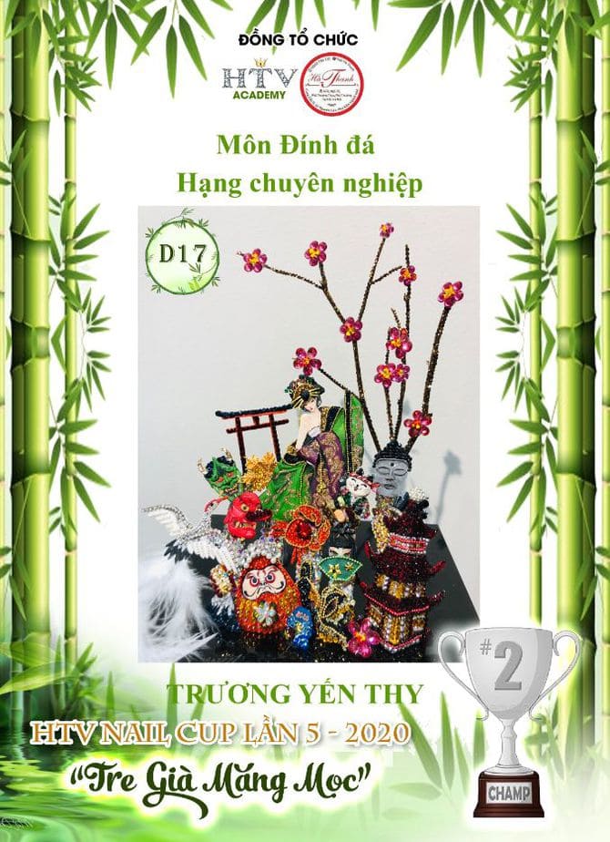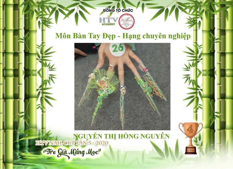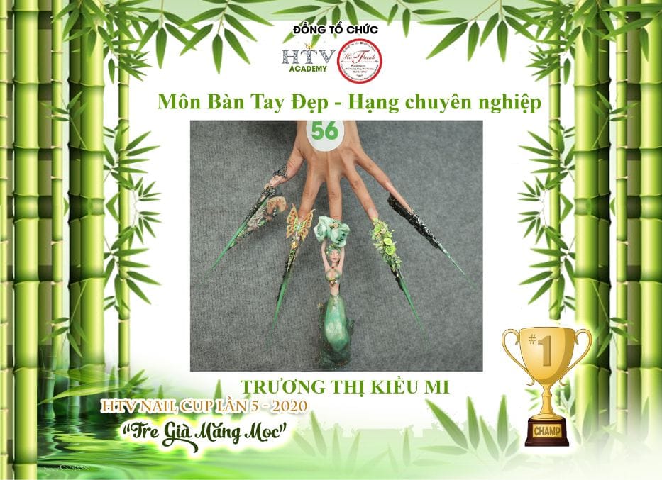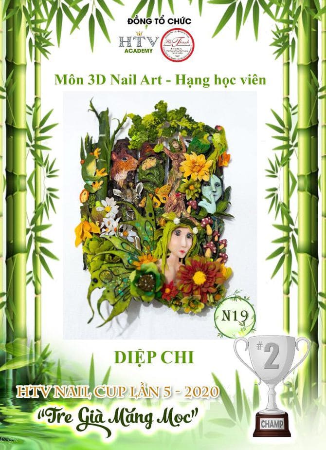 Hua Thanh Vy director of education for HTV Nail Vietnam Academy for nail design in Ho Chi Minh City, Vietnam, hosted and organised one of the largest nail competitions the world has seen during the pandemic – The HTV Nail Cup 5th Edition 2020. The theme across the board was ‘Old Bamboo Shoots Sprouting’, which was interpreted and expressed through flat art, 3D art and bling sectors. Fifty sponsors supported the event, which attracted 100 competitors, 171 entries and 300 guests at the awards event.