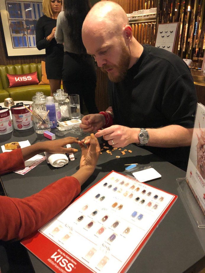 After being papped by the KISS Products photoboard, we mingled with guests a the stunning setup at London’s Marylebone Hotel, spotting the likes of session techs Robbie Tomkins and Yasmine Elwakil tending to the nails of attendees. Techs used the new nail offerings from Kiss; its Glam Fantasy nail collection and imPRESS Press-On Manicure styles – to add glamour to the fingertips of guests, while beauty experts completed looked by applying some of the new strip lashes from the brand; the Couture Faux Mink collection, Triple Push-Up styles and 5th Avenue range.