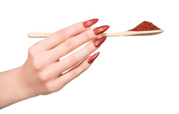 - Paprika: A metallic paprika orange glitter that looks like fire on the nails with lots of flash. This glitter is an eye catcher with lots of depth.