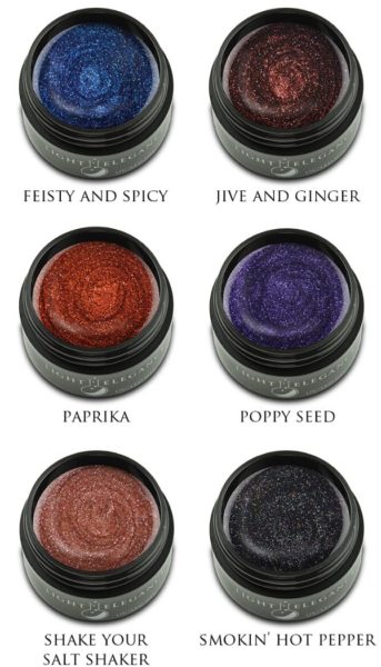 “Spice challenged the LE colour team look at spices from around the world and transform them into stylish colours and glitters, and they certainly rose to the challenge,” comments Lezlie McConnell, Light Elegance co-owner & colour mother.