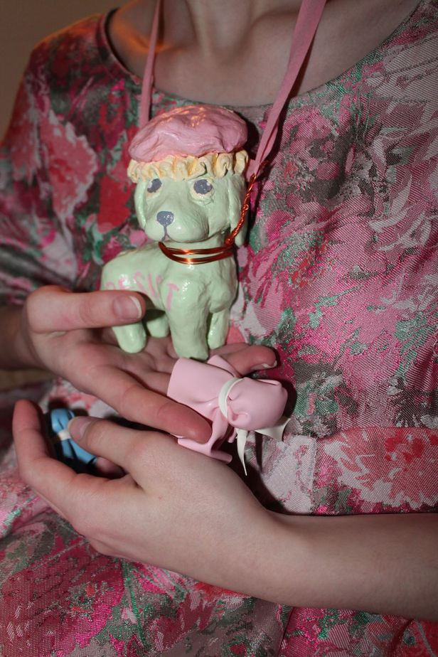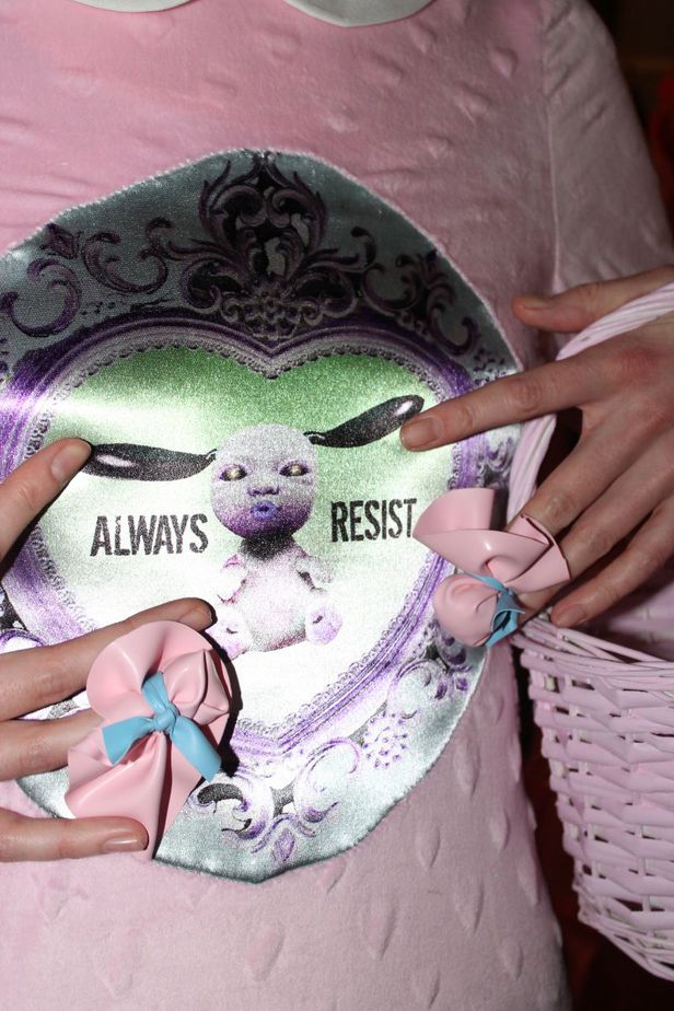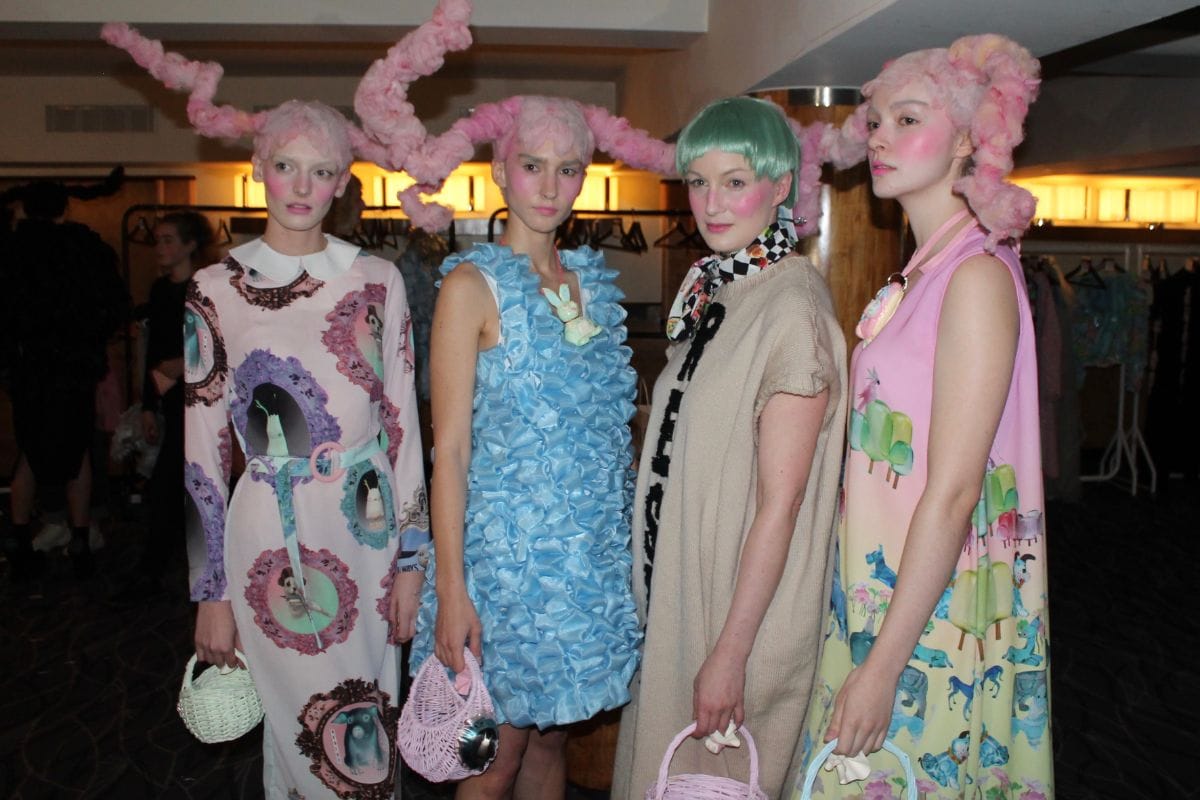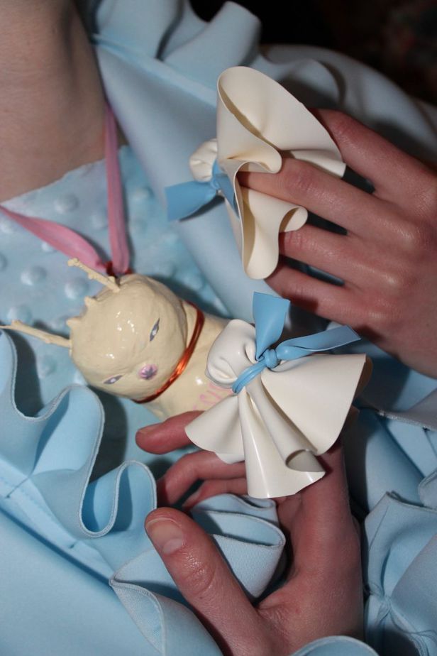 The dummies accompanied the collection, which saw a mix of childlike bright and pastel tones. In contrast, the line-up also saw brooding black designs. Models wore either wigs in pastel shades with flushed pink blush, or black wigs with dark, brooding eye make-up. The hair lead for the show was Bea Carmichael and the make-up lead, Michelle Strain.