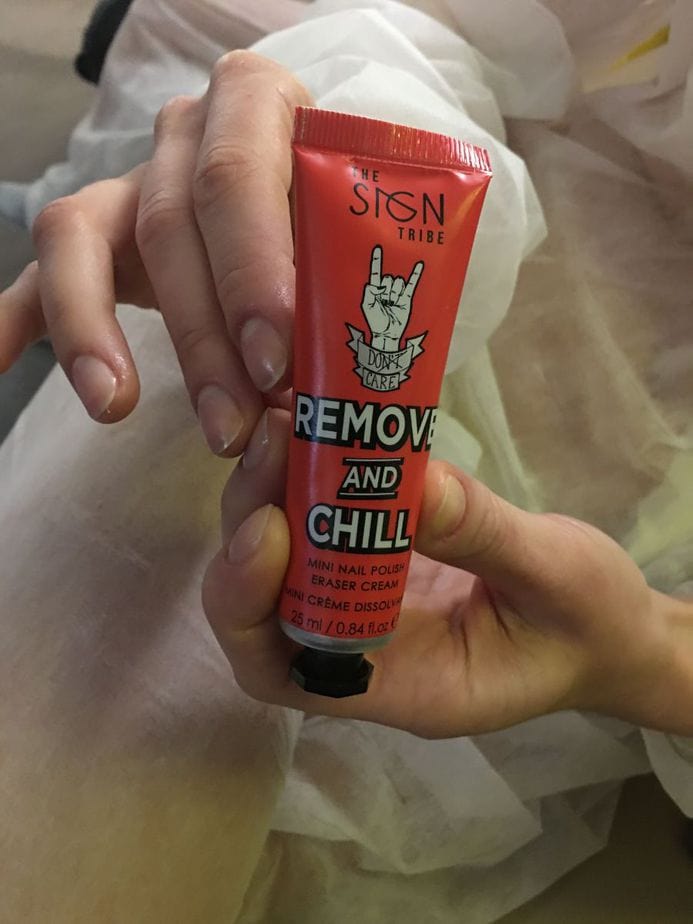 The nail look for the show was kept simple and product finish free. Nails saw cuticle work, filed to a neat shape and buffed to a high shine to create a clean look. This was then followed by a slick of cuticle oil and hand moisturiser. Prep was also aided by The Sign Tribe’s Remove and Chill – a nail polish removing cream ideal for backstage being low odour and spill-free.