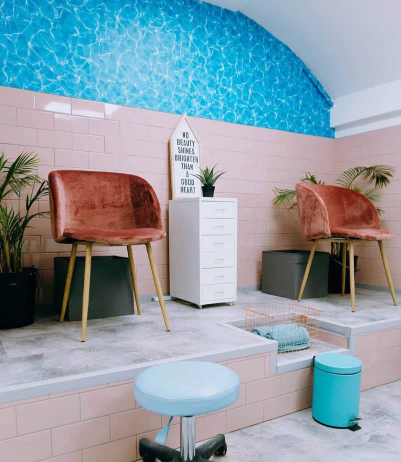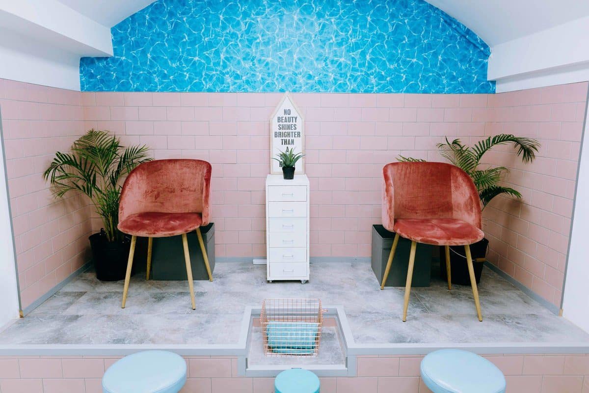 The salon features the same quirky characteristic as the previous premises, including slogan boards and Instagrammable props, and is a brighter, lighter space decked out in cool colours.