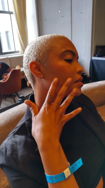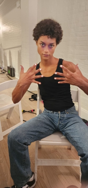 Wanting a unique look for the male models, Pattie used custom nail stickers that she created, inspired by Vivienne’s personal NFT collection. Female models wore a nude shade.