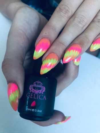“The next stop for Souz & Co was a show at Es Paradis nightclub. Unfortunately, we had early flights and the show didn’t start until midnight so we applied nails to the models and dashed to the airport. For this show, Hair By Vogue braided neon hair into the models’ hairstyles while we applied either neon pink, green or orange nails using shades from Gelica Gel with accents of black and white with silver stud nails.