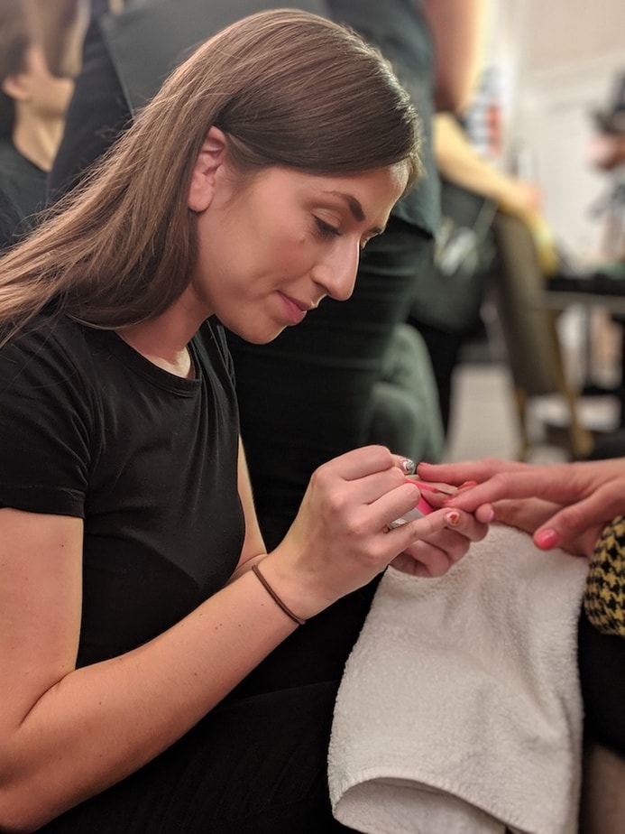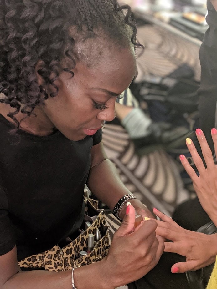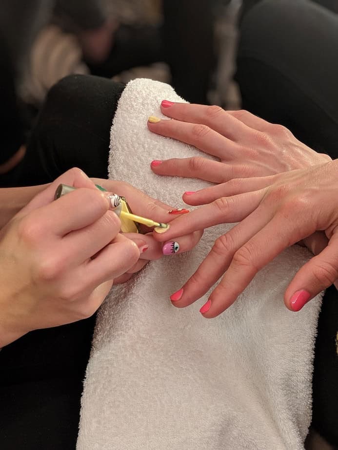 The nail team was made up of @cocoldnnx, @root_to_beauty, @katebacon, @sasha_goddard_ and @furiousfiler, who chose neon bright shades No. 104, No. 105, No. 248 and No. 194 from the Gemini nail polish range.
