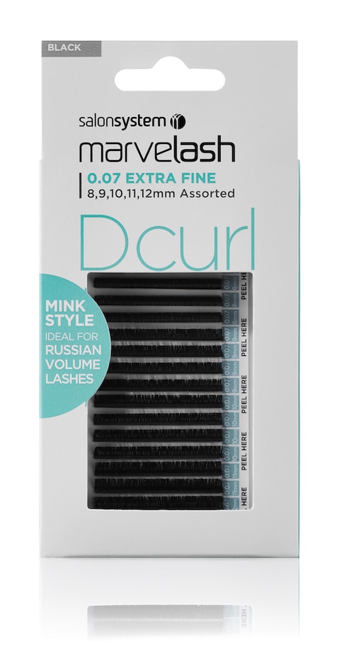 - Marvelash D Curl 0.07 Assorted: The D curl lashes have a 0.07 thickness and are ideal for creating the Russian look, adding volume and combining different lengths and curls for unlimited creativity. They can be used for a natural curly look to with a selection of other curls for a bespoke finish.
