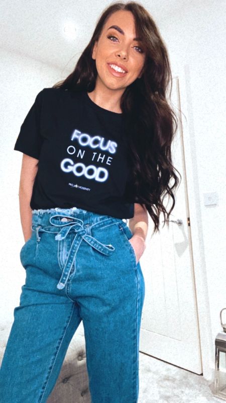 Five t-shirt designs are currently available, featuring different positive affirmations. The designs are printed on an organic, ethical, climate neutral and PETA-approved vegan t-shirt. Phrases include: ‘I am enough’, ‘Bad vibes don’t go with my outfit’, ‘Positive AF’, ‘Live more worry less’ and ‘Focus on the good’.