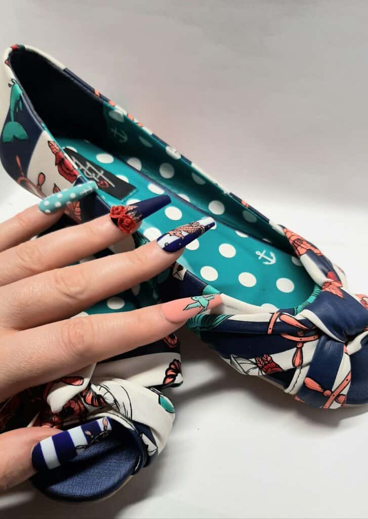 Samantha comments: “The styling of the feet is well-positioned, and it’s a clear and concise image. Toenails are flawless with art consistency on the toes and complimentary colour, and the Fancy Feet brief is adhered to. Beautifully done.”