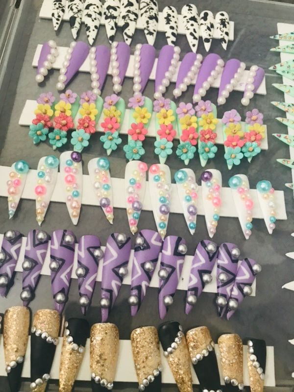 The salon owner and session nailist was briefed by the designer to create nails in shades of white and pastel with splashes of colour and multiple accessories. Following on from the team’s efforts at the AW19 showcase in February, the finished looks saw an array of patterns, colours and designs for SS20.