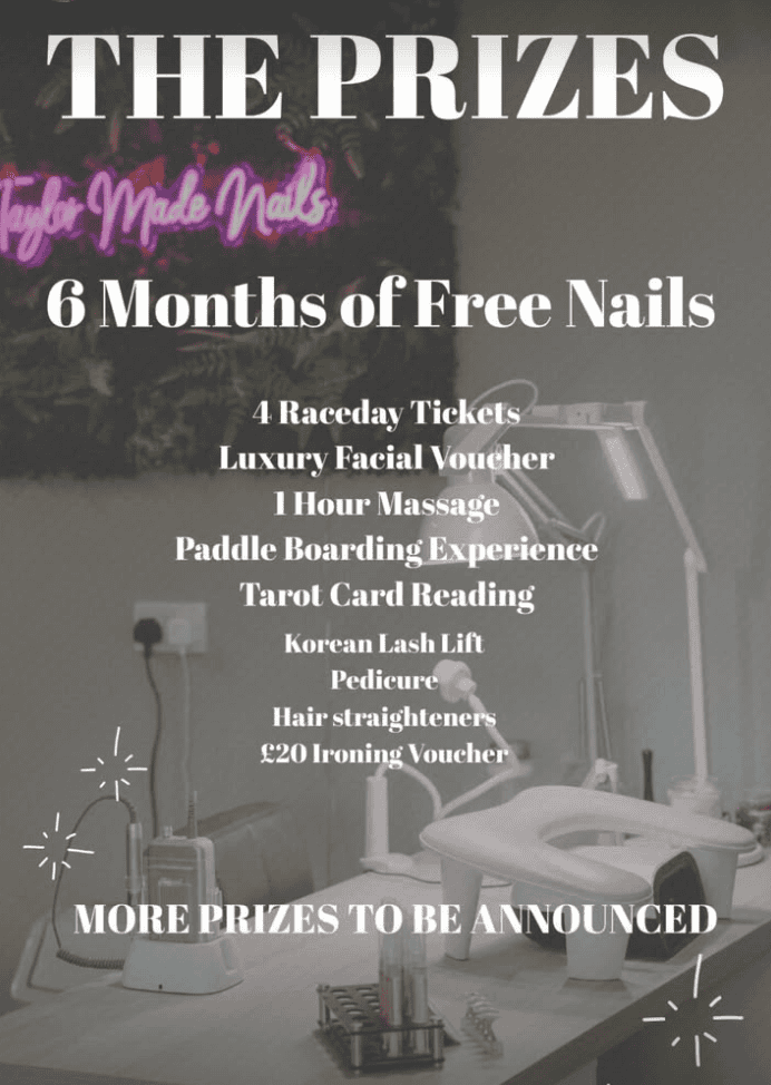 To raise as much money as possible for the charity, Alice’s 24-hour Nailathon is accompanied by a raffle featuring prizes such as six months of free nail treatments, a luxury facial voucher, hair straighteners and a paddle boarding experience. Alice also has a JustGiving page here.