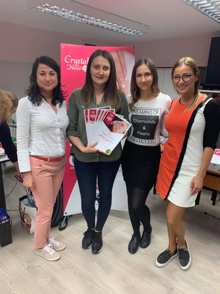 Two Crystal Nails UK educators, Kara Evans and Tihana Besevic, successfully completed and left the course having scooped the esteemed absolute international master educator accolade.