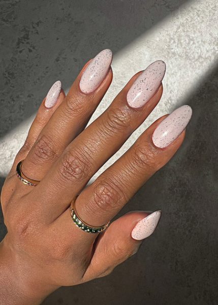 - Dolce – Dolce is a totally unique textured stone hue that’s creamy and opaque. Shot through with contrast black flecks, this gel is fresh and ultra-modern. Add a matte top coat to highlight the stone effect.
