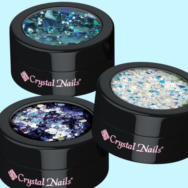 The Crystal Nails Glam glitters at £3.90 inc VAT offer a mix of glitters with a sparkling glittering surface when applied to the nails. Easy to use, these glitters can be rubbed into the sticky surface of the nails or mixed in for a high shine.